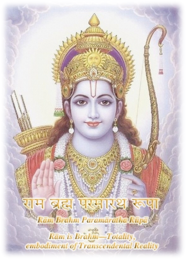 Rām, dans le Rāmāyaṇ, est représenté comme l’incarnation du Dharma – la loi naturelle – Purushottam – le souverain abstrait, non manifesté et absolu de l’univers toujours en expansion.